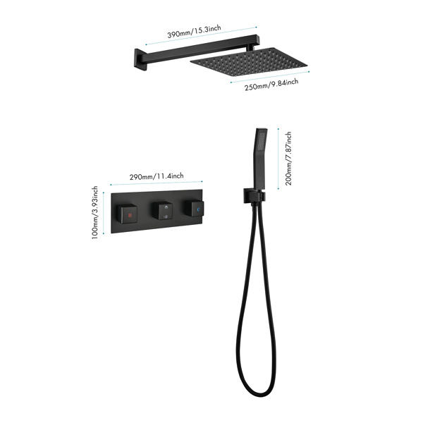 "ชุดฝักบัวอาบน้ำทองเหลืองสีดำด้านสุดหรูในห้องน้ำพร้อมฝักบัวขนาด10นิ้วและฝักบัวขนาดมือถือ"
