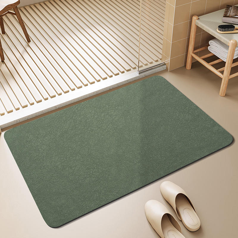 พรมห้องน้ำสีทึบทรงสี่เหลี่ยมผืนผ้าสีเขียวเข้มกันลื่นดูดซับน้ำใช้ในบ้าน