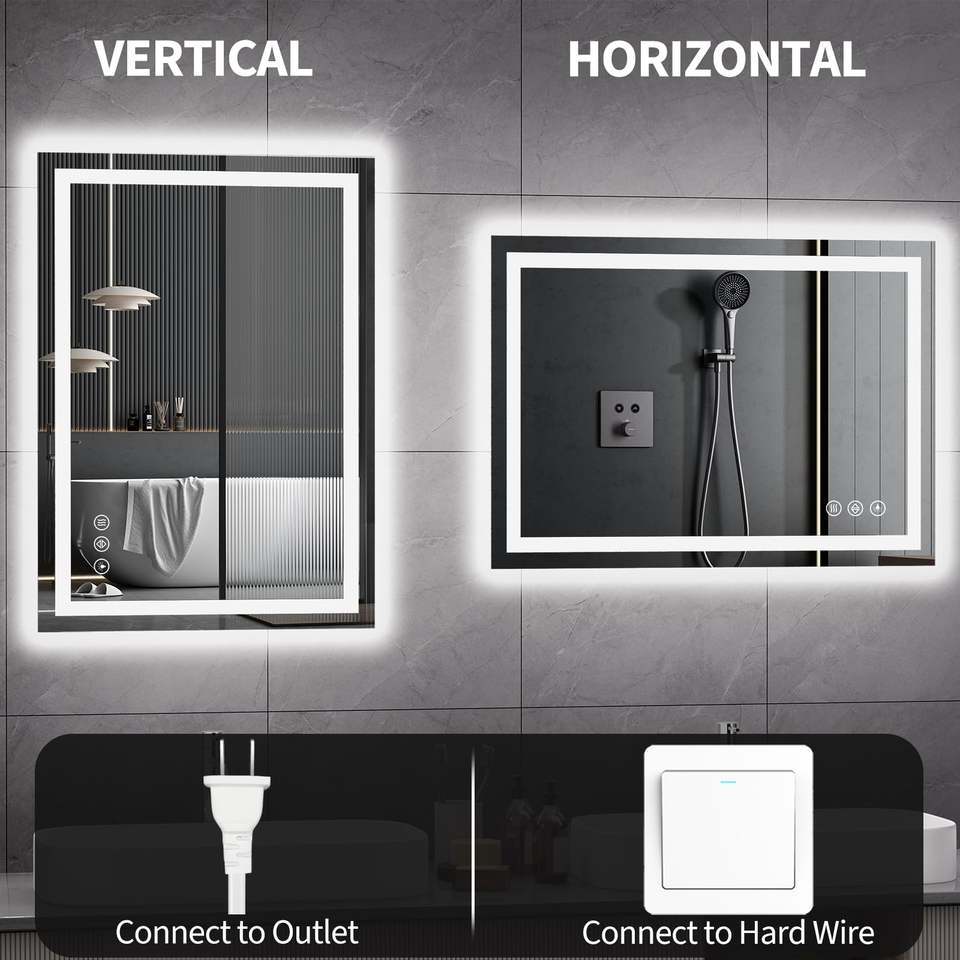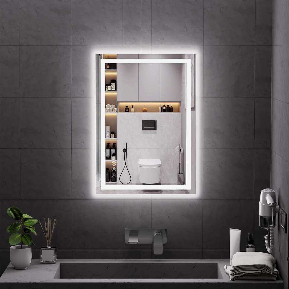 กระจกห้องน้ำ, กระจกห้องน้ำ, กระจกสมาร์ท, หน้าจอสัมผัส, ไฟ LED, กระจกสี่เหลี่ยม