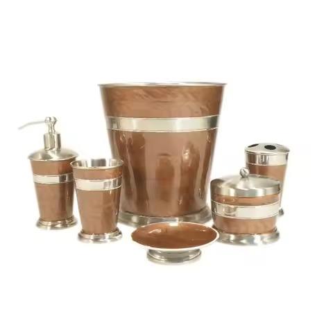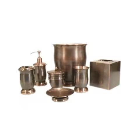 ชุดอุปกรณ์ในห้องน้ำพร้อมกล่องใส่กระดาษทิชชู่ ที่ใส่สบู่เหลวโลหะ ที่วางแปรงสีฟัน ถังขยะ