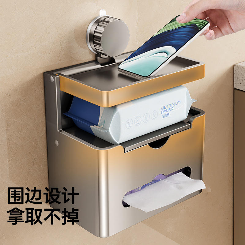 กล่องกระดาษทิชชู่แบบติดผนังในห้องน้ำ ที่ใส่กระดาษชำระแบบติดผนัง รูปทรงสี่เหลี่ยมผืนผ้า อเนกประสงค์ ทนทาน ชั้นวางเก็บของ