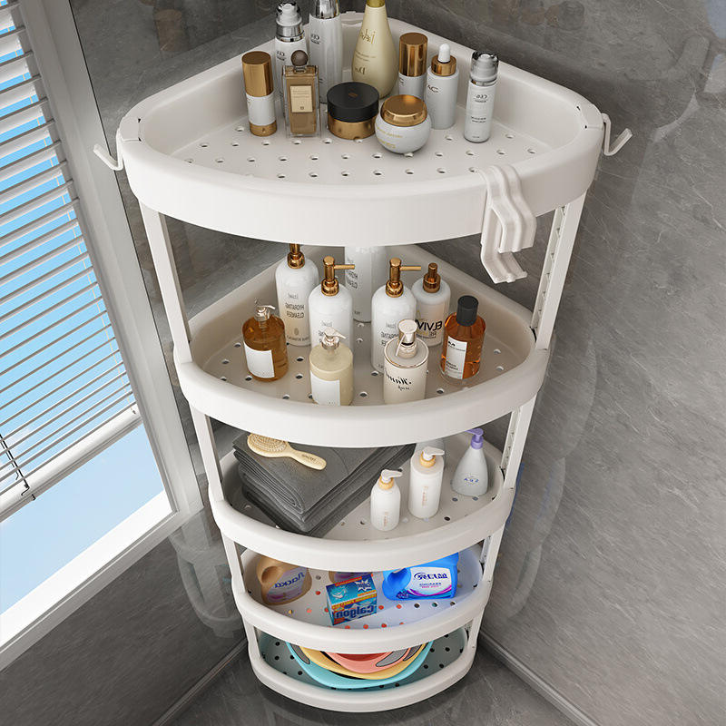 ชั้นวางของสามเหลี่ยมในห้องน้ำ 4 ชั้น ชั้นวางมุมแบบตั้งพื้น ทนทาน จัดเก็บได้หลายระดับ สำหรับห้องน้ำและอ่างล้างหน้า