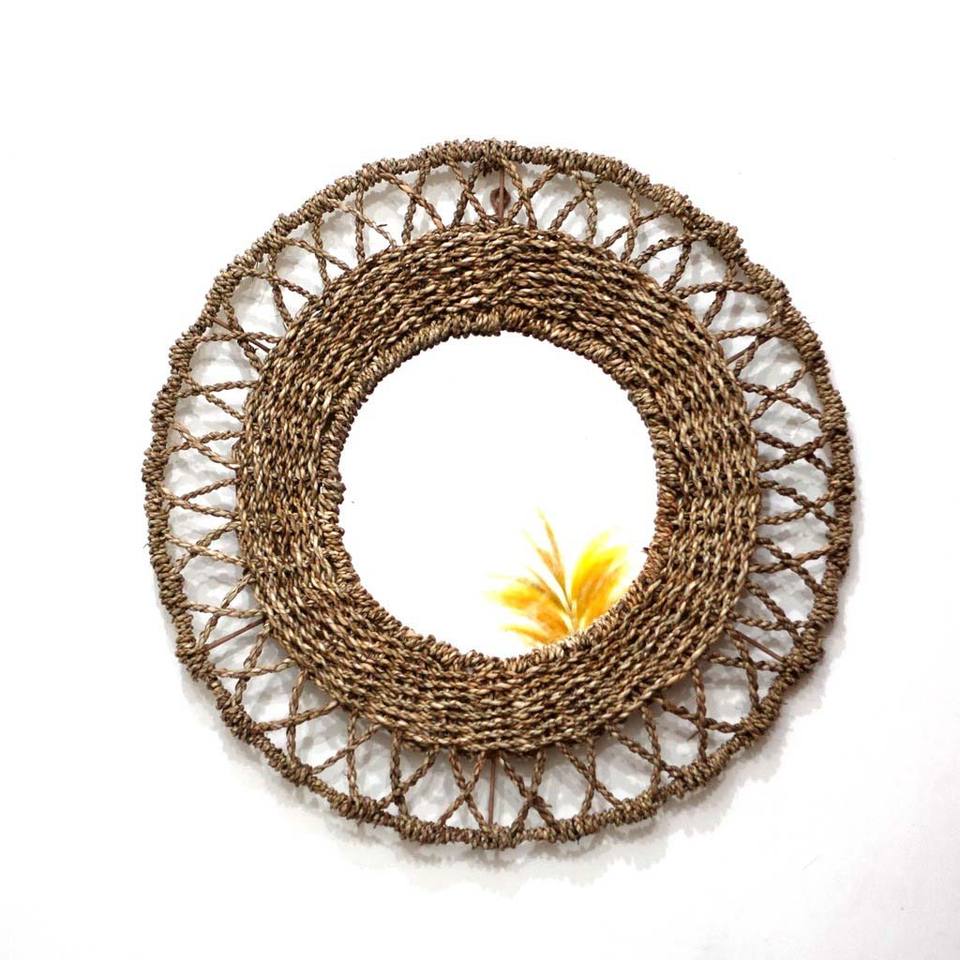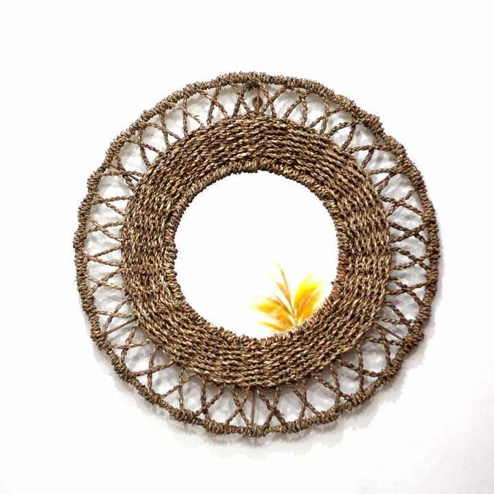 กรอบกระจกตกแต่งห้องน้ำ ทำจากหญ้าทะเลคุณภาพสูง กระจกหวายทะเล