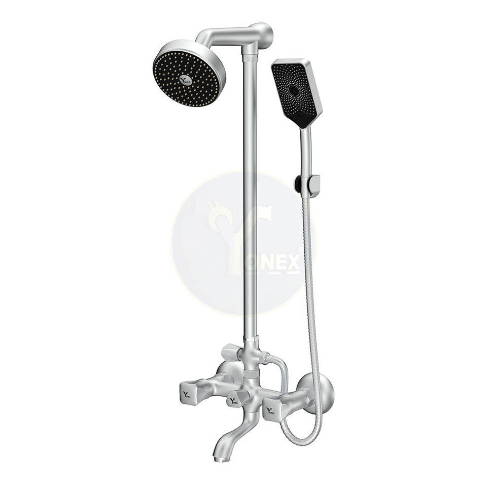 ฝักบัวติดผนังทองเหลืองขัดเงาคุณภาพสูง พร้อมหัวฉีดน้ำแบบเรนชาวเวอร์ขนาดใหญ่ ระบบควบคุม 4 ปุ่ม สำหรับใช้ในโรงแรม ผลิตในประเทศปากีสถาน