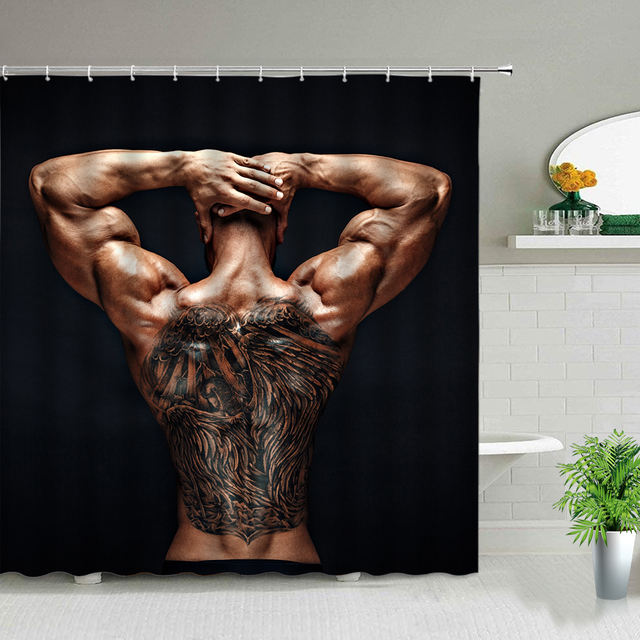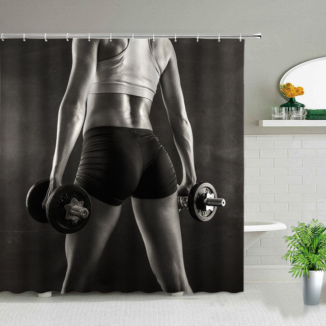 ม่านห้องน้ำตกแต่งอ่างอาบน้ำชุดม่านห้องน้ำผ้ากันน้ำพิมพ์ลาย3D ยิมฟิตเนสเซ็กซี่สำหรับผู้ชายและผู้หญิงรูปร่างดี