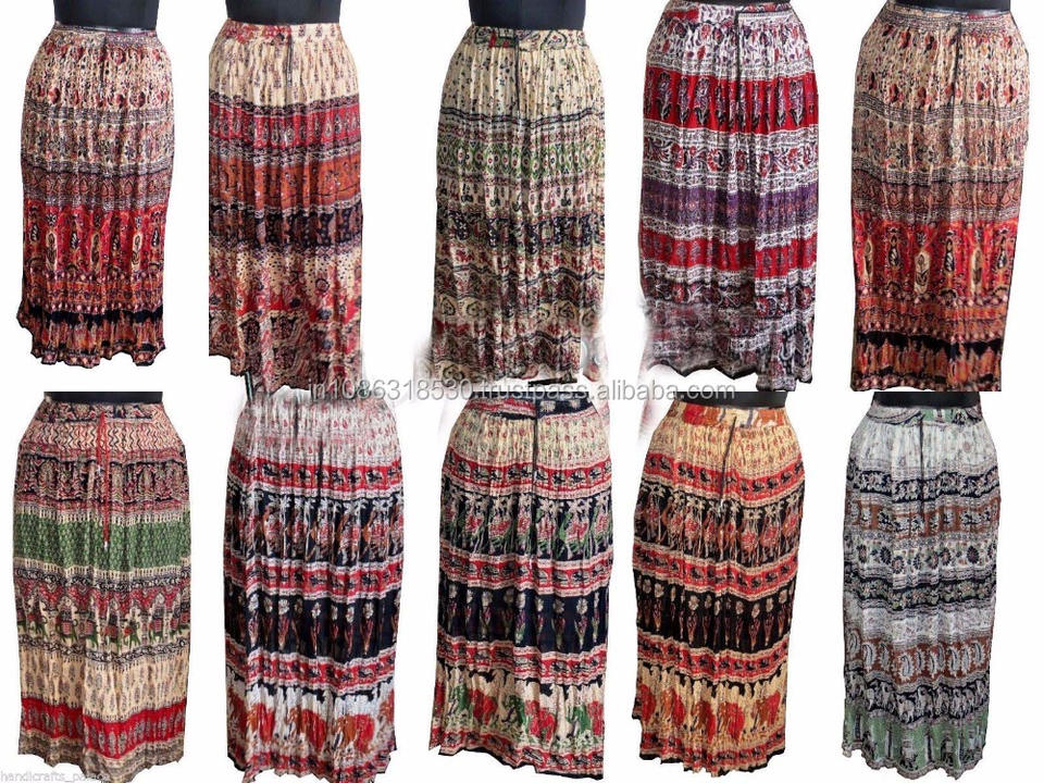 Batik สัตว์ยืดหยุ่นเอวกระโปรงกระโปรงยาว Handprinted ยาว Jupe Falda Hippie Boho ยิปซีเผ่าอินเดียเผ่ายิปซี Kjol