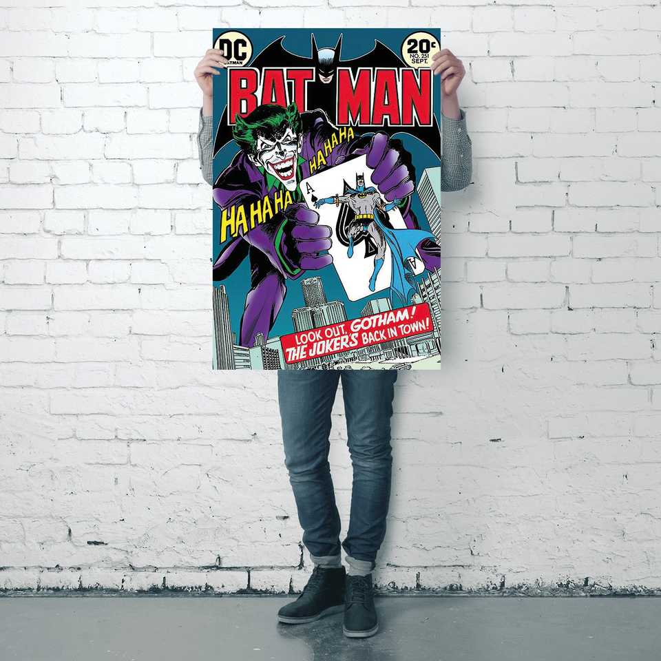 โปสเตอร์ปกการ์ตูนแบทแมน โจ๊กเกอร์กลับมาแล้ว! ของตกแต่งบ้านแบบม้วน พิมพ์ออฟเซ็ตและดิจิทัลบนผ้าโพลีเอสเตอร์และพลาสติก