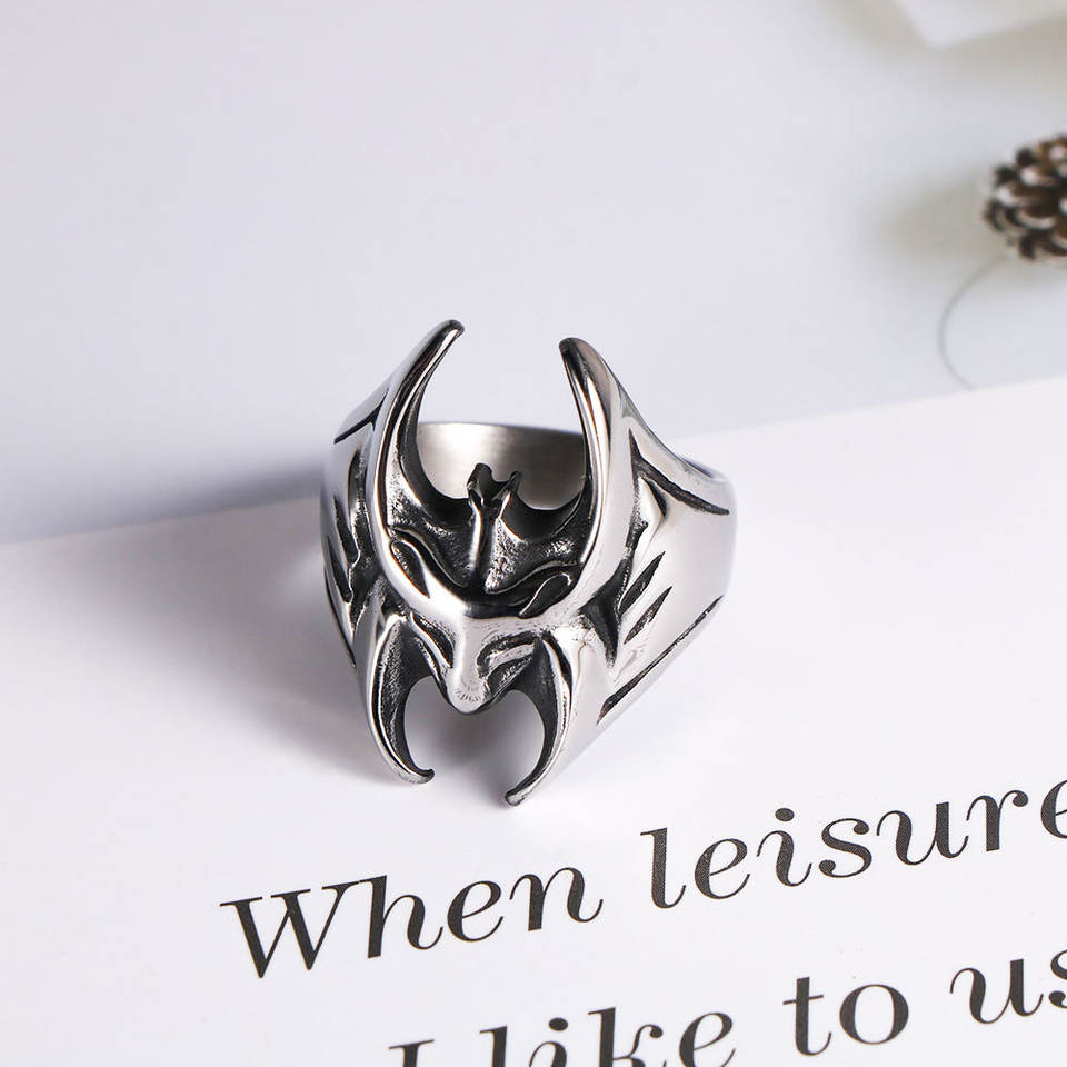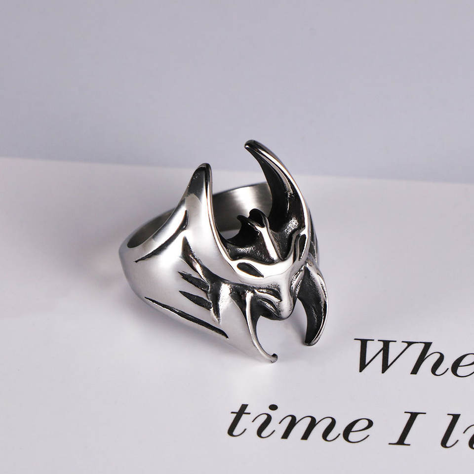 แบทแมน ไทเทเนียม สตีล ริง แหวนเหล็กไทเทเนียมรูปทรงหน้าสำหรับผู้ชาย ของขวัญเครื่องประดับ SA1195