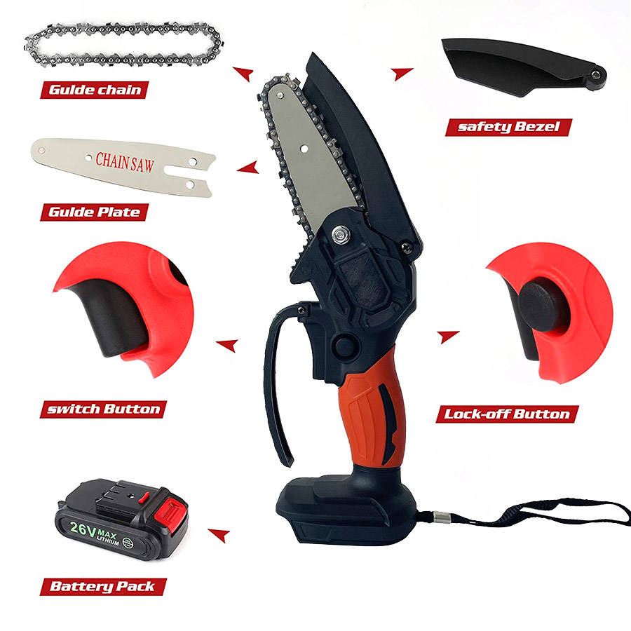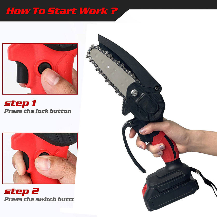 Battery Chainsaw Mini 4/6 Inch Cordless Lightweight Tool with Auto Oiling for Cutting