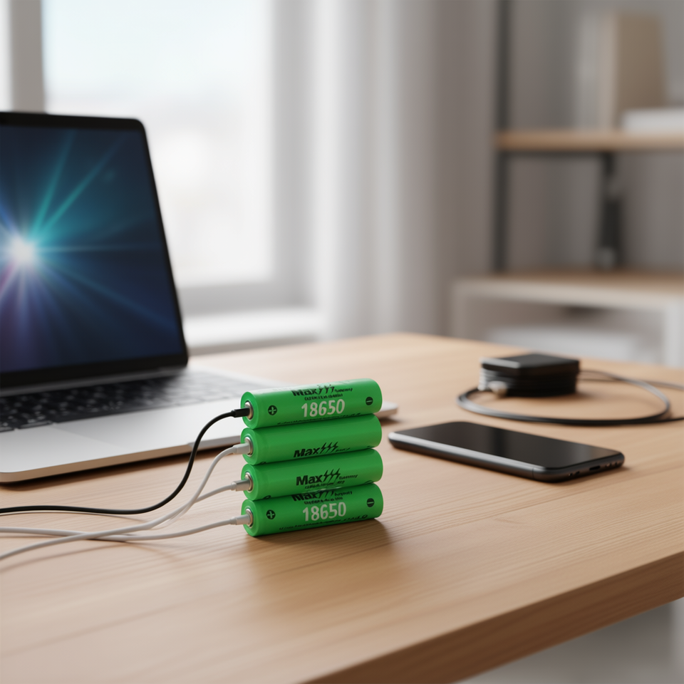 แบตเตอรี่ลิเธียม 18650 แบบชาร์จได้ ความจุสูง สีเขียว 3.7V อุปกรณ์จ่ายไฟแบบพกพา โดย Young Electronicos รุ่น BA058 พลังงานที่ทนทาน