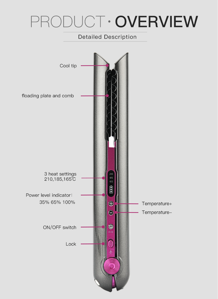 Flatirons เครื่องยืดผมขนาดเล็กพกพาได้,เครื่องยืดผมขนาดเล็กไร้สายทำจากเซรามิกไร้สายแบบชาร์จไฟได้ใช้แบตเตอรี่