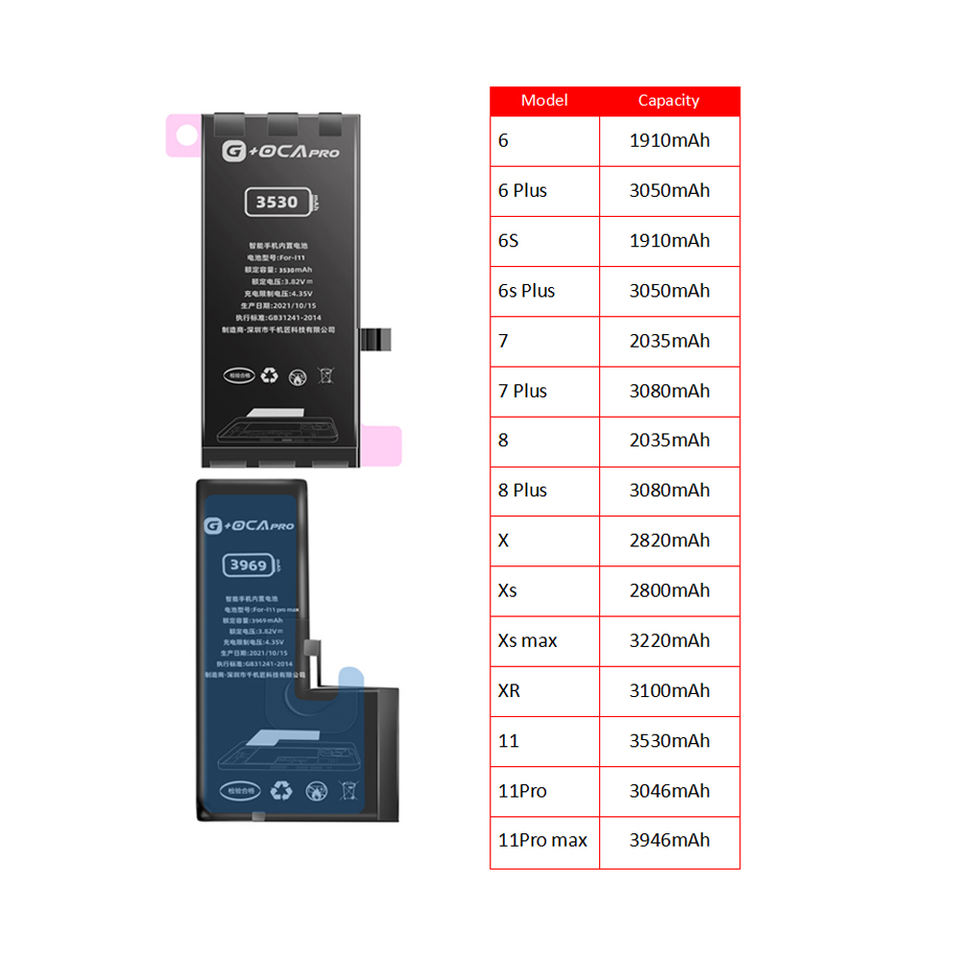 การเปลี่ยนแบตเตอรี่สำหรับ iPhone 11 11pro 11Promax 6 7 8 X XS XSMAX แบตเตอรี่แบบชาร์จไฟได้