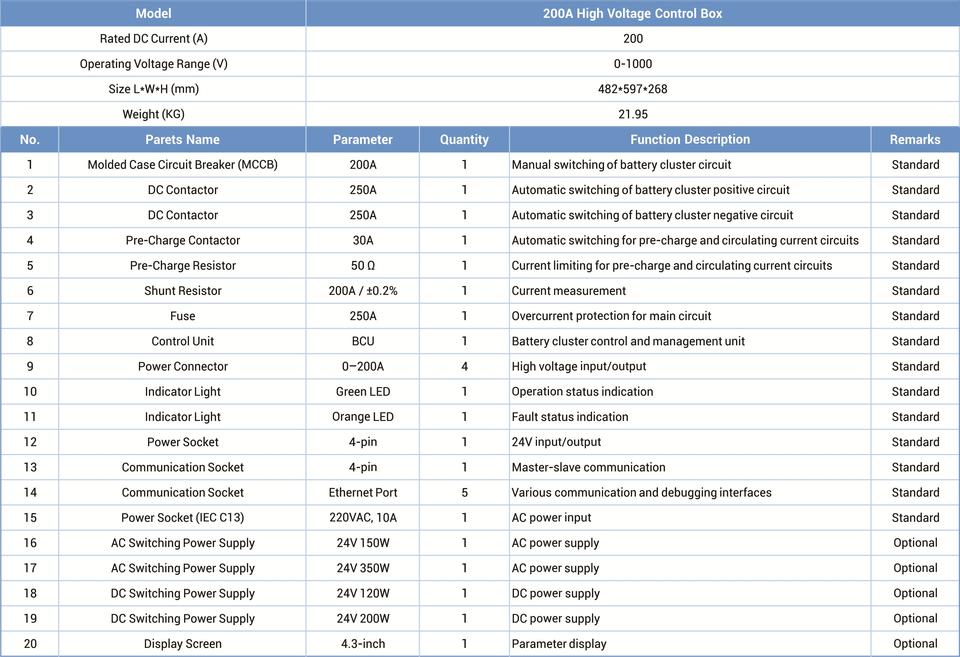 กล่องแรงดันสูง 200A BCU พร้อมระบบ BMS แบบ Active Balanceชื่อสินค้า