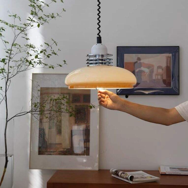 โคมไฟเพดานเหล็กปรับระดับได้สไตล์ Bauhaus Retro Milk Tea แบบญี่ปุ่น Wabi-Sabi สำหรับห้องรับประทานอาหาร บาร์ และเกาะกลางห้องครัว
