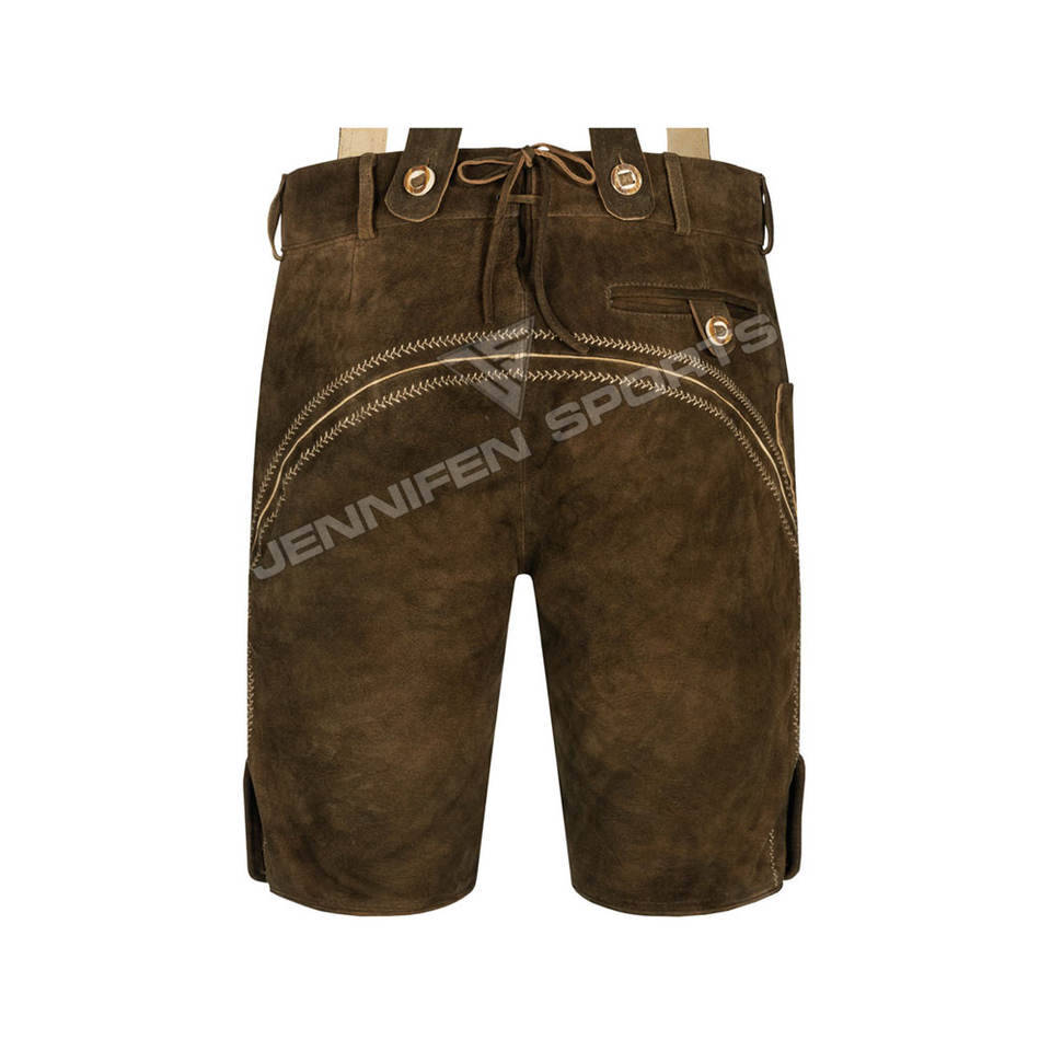 Bavarian Men's Lederhosen สั้นพร้อมกระโปรงปุ่มหนังนิ่ม Herren ของแท้ปิดกระเป๋าเย็บปักถักร้อยด้านหน้า