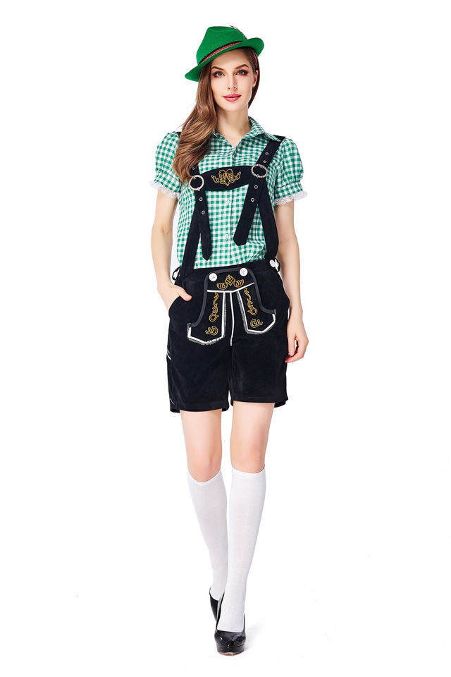 ชุดเลเดอร์โฮเซินสตรีชาวบาวาเรีย พร้อมบริการพิมพ์โลโก้ตามสั่ง ชุดอ็อกโทเบอร์เฟสต์แบบดั้งเดิมสีพื้น พร้อมสายรัดไหล่ ชุดหนึ่งชุด