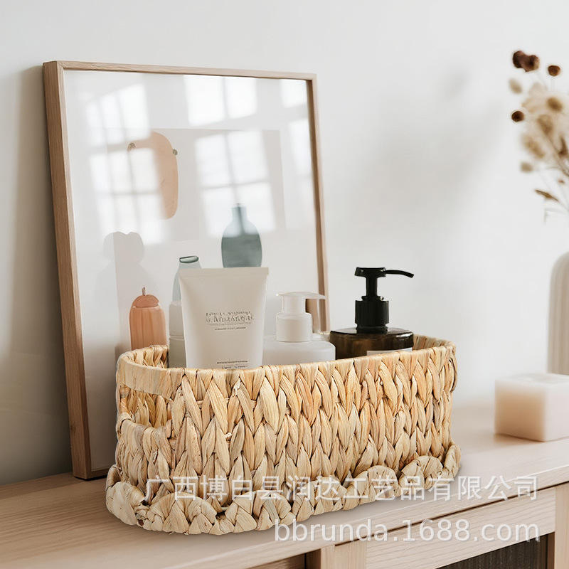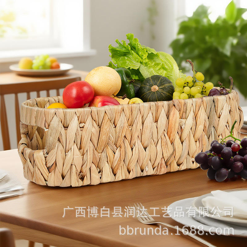 ตะกร้าเก็บของสานจากผักตบชวา งานแฮนด์เมด ทรงสี่เหลี่ยมผืนผ้า สำหรับวางบนโต๊ะกาแฟ ตู้เก็บของ หรือใส่อาหาร พร้อมฝาปิด