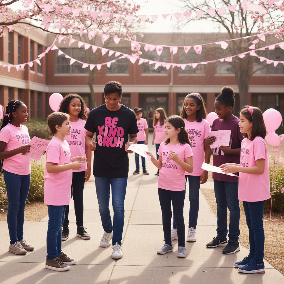 เสื้อยืดเด็ก Be Kind Anti Bullying Awareness สำหรับเด็ก แขนสั้น คอกลม สีชมพู ผ้าฝ้าย สำหรับโรงเรียน
