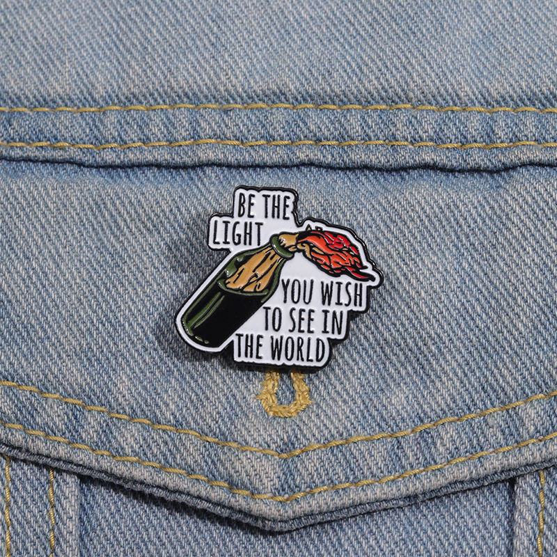 เป็นไฟที่คุณต้องการโคมไฟเคลือบรูปขวดเข็มกลัดการ์ตูนเครื่องประดับสัญลักษณ์ปกเสื้อที่สร้างแรงบันดาลใจอย่างสร้างสรรค์