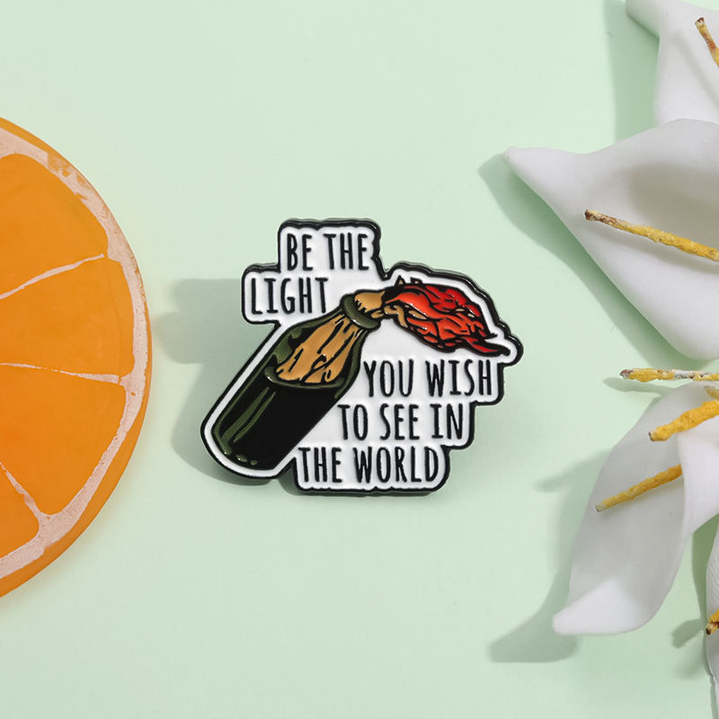 Be the Light You Wish to See in the World Enamel Pins Bottle and Light Cartoon Brooches Creative Positive Lapel Badge