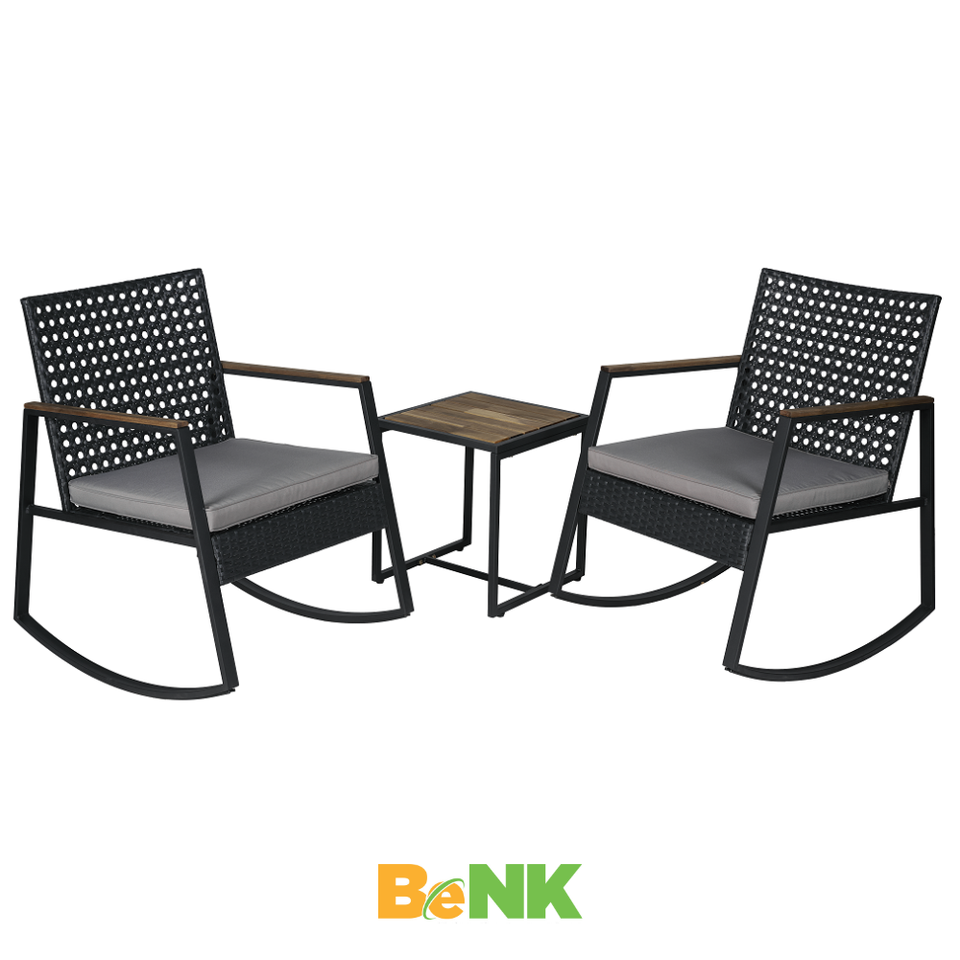Benk ชุดเฟอร์นิเจอร์หวาย PE สำหรับกลางแจ้ง, ชุดเก้าอี้โยกสำหรับสวนแบบทันสมัยสำหรับกลางแจ้งและลานภายใน