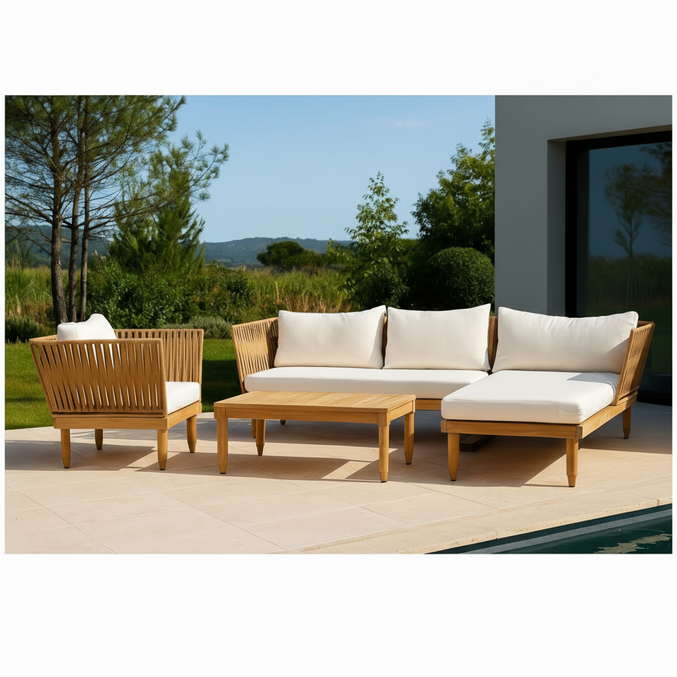 ชุดเฟอร์นิเจอร์ไม้สักแท้แบบไม่พับได้สำหรับกลางแจ้ง BeNK Modern Teak พร้อมการรับประกัน 1 ปี สำหรับโรงแรม ห้องรับประทานอาหาร โซฟาพักผ่อน สวนสาธารณะ