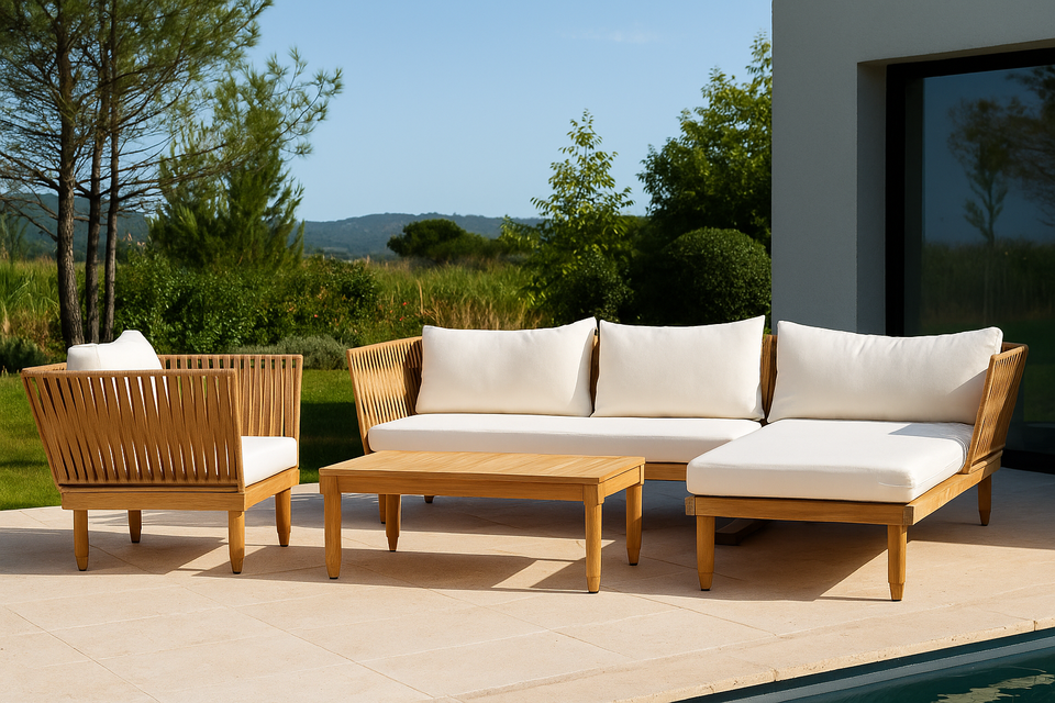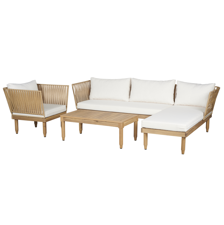 ชุดโซฟาหวายผสมไม้ FSC ทนทานต่อสภาพอากาศทันสมัย [BeNK] สำหรับชายหาด ระเบียง สวน สนามหลังบ้าน เฟอร์นิเจอร์สนามหญ้า