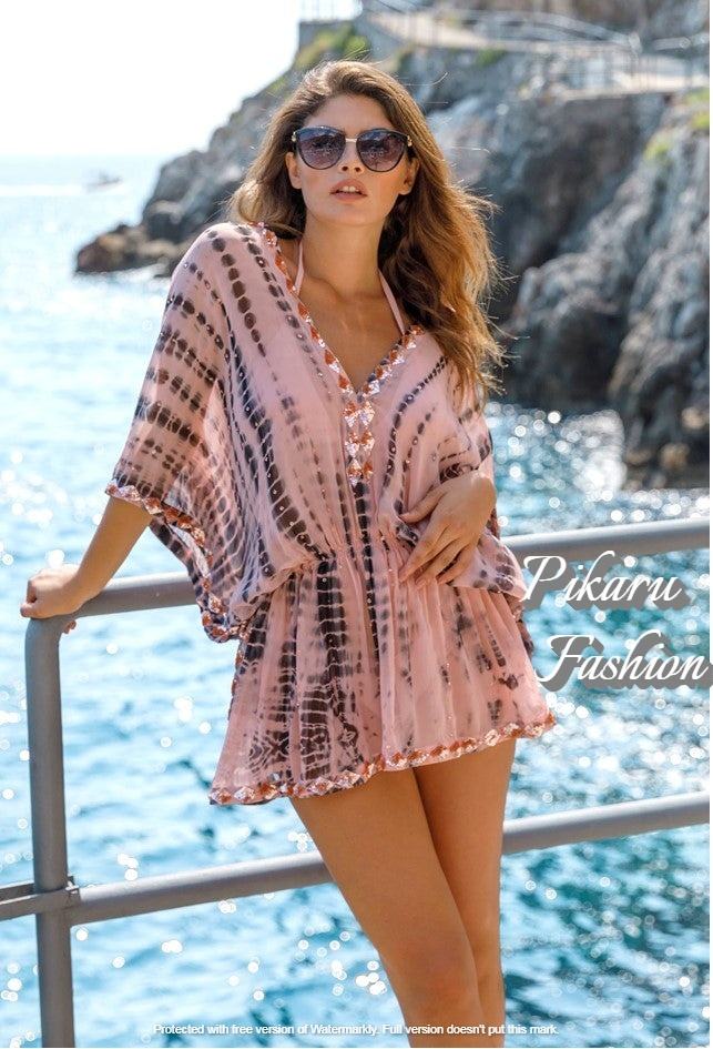 เสื้อคลุมชายหาดปักลายและมัดย้อม,เสื้อแฟชั่นแขนสั้นขนาดใหญ่พิเศษทำด้วยมือเสื้อคาฟตัน