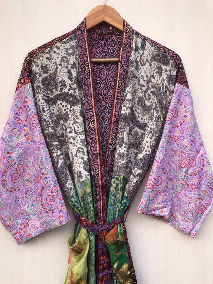 ชุดคลุมชายหาดสไตล์วินเทจอินเดีย ผ้าไหมซารีแท้ 100% ชุดกิโมโน ชุดเดรสโบโฮหลากสีสัน ชุดชายหาดสำหรับใส่ในรีสอร์ท ราคาขายส่ง