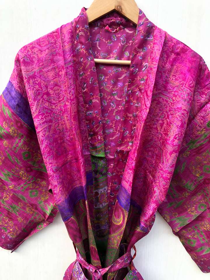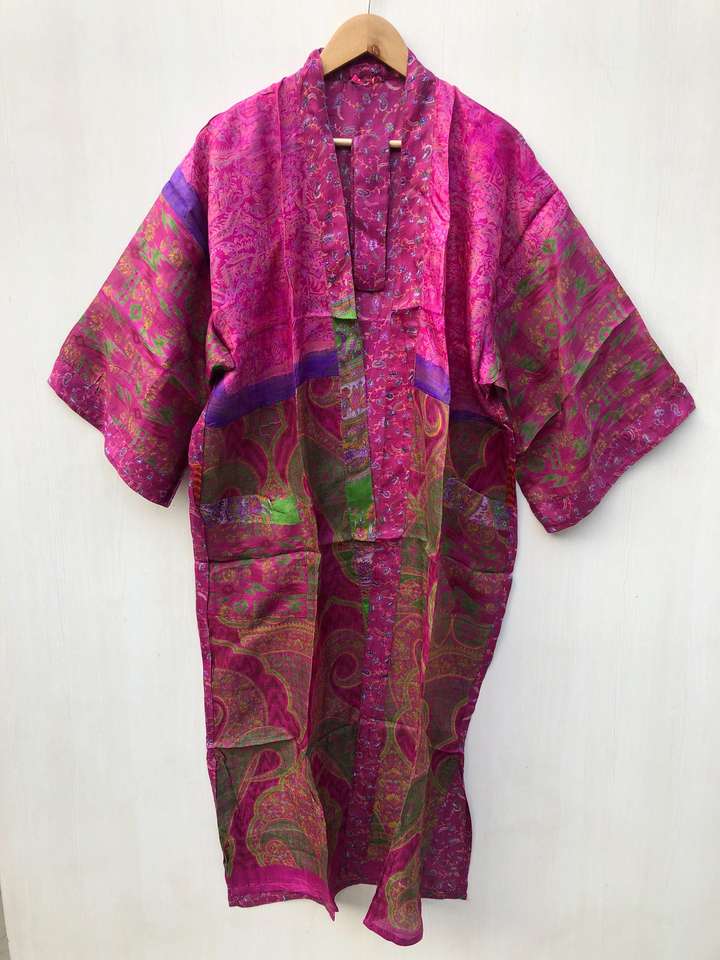 ชุดคลุมชายหาดสไตล์วินเทจอินเดีย ผ้าไหมซารีแท้ 100% ชุดกิโมโน ชุดเดรสโบโฮหลากสีสัน ชุดชายหาดสำหรับใส่ในรีสอร์ท ราคาขายส่ง