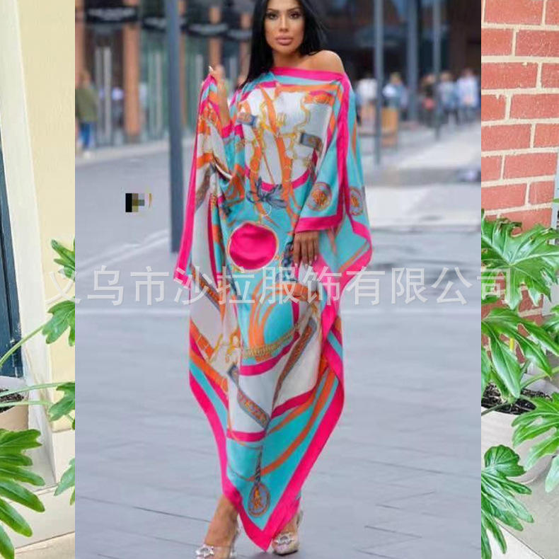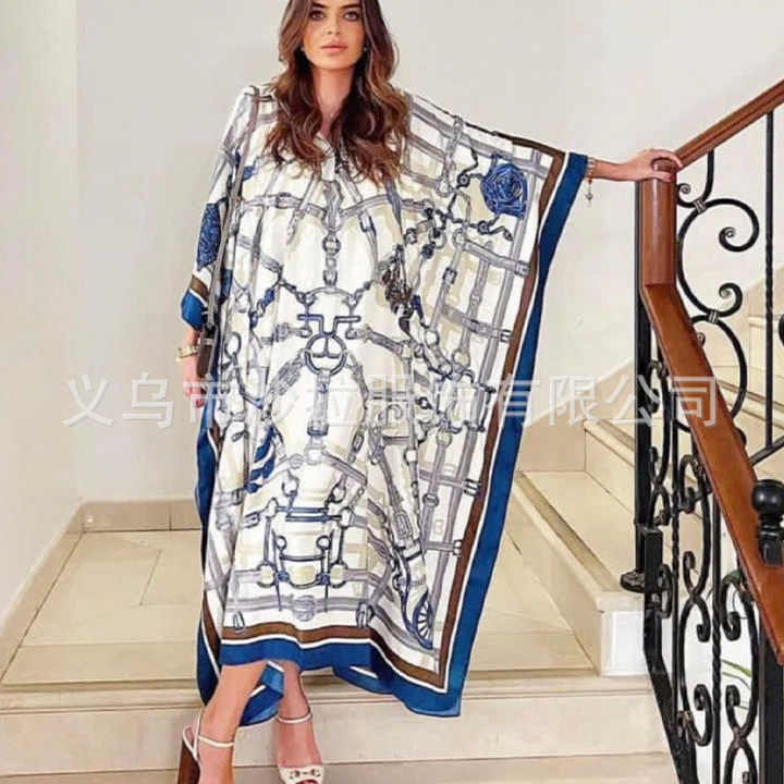 ชุดคลุมชายหาดลายพิมพ์ ชุดเดรสชายหาดสำหรับวันหยุด ชุดเดรสยาวหลวมๆ เสื้อบิกินี่ คาฟทัน