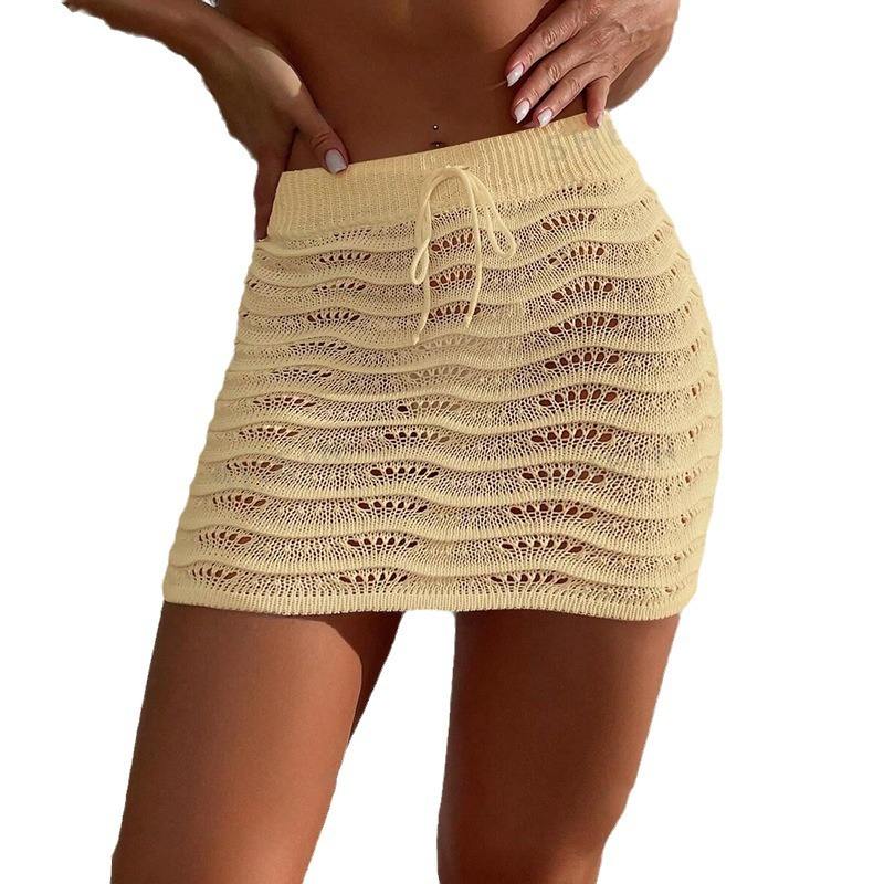 แฟชั่นชายหาด ชุดเดรสยาวประดับเลื่อมหรูหรา สไตล์ธรรมชาติ สำหรับฤดูใบไม้ร่วง ชุดลำลองสีพื้น กระโปรงถักลายฉลุ