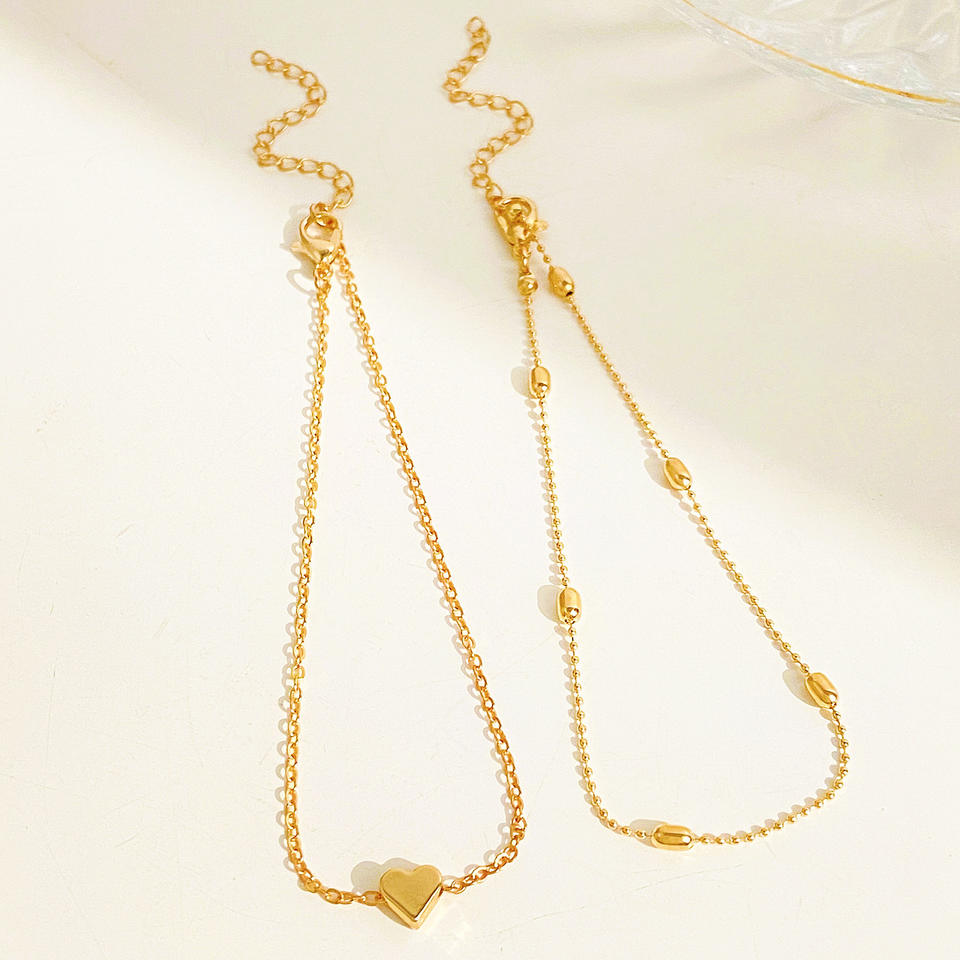 สร้อยข้อเท้าสีทองสองชั้นสำหรับผู้หญิงรองเท้าชายหาดรูปหัวใจ