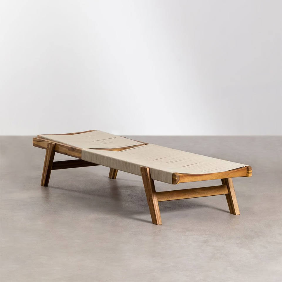 Product Name:Beach Sun Loungers Garden Furniture Pool Hotel Teak Wood Rope-Nela
