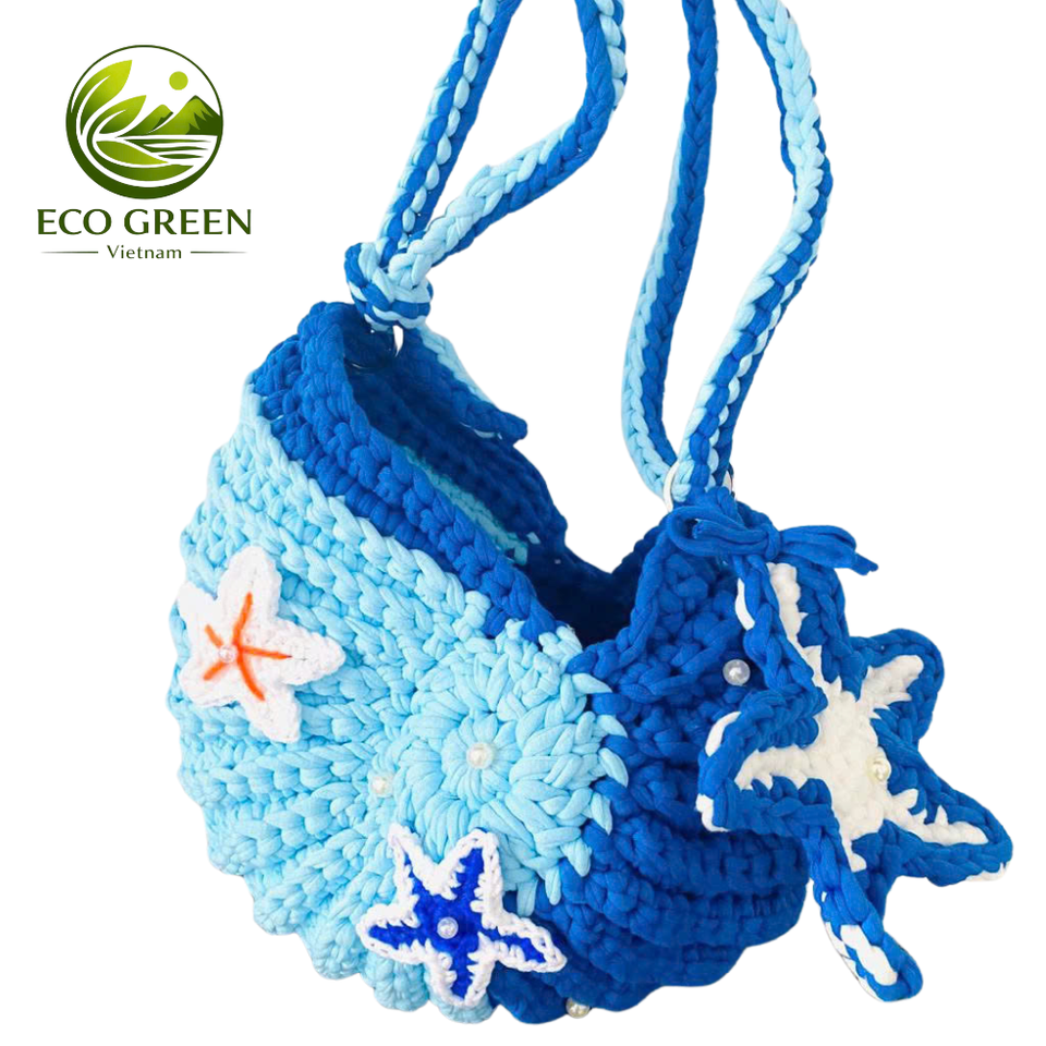 กระเป๋าโครเชต์ลายเปลือกหอยสำหรับไปทะเล ทำมือ กระเป๋าถือสะพายไหล่สไตล์ชายทะเลสำหรับฤดูร้อน เป็นมิตรกับสิ่งแวดล้อม ขายส่งสำหรับผู้หญิง รับผลิตแบบ OEM ODM