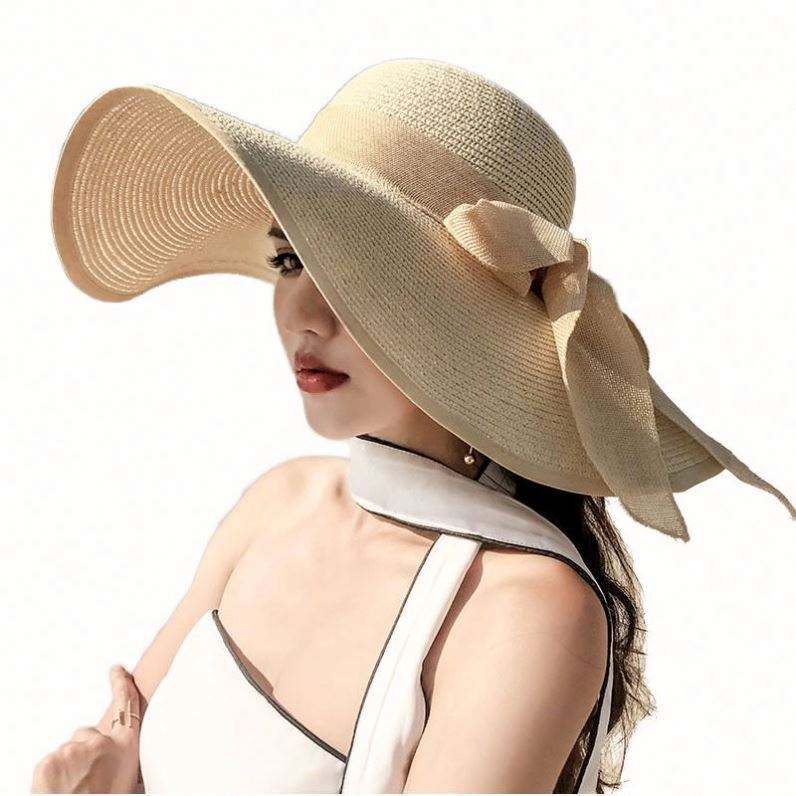 หมวกฟางชายหาด หมวกปีกกว้างสำหรับฤดูร้อน หมวกกันแดด หมวกอเนกประสงค์สำหรับการเดินทาง