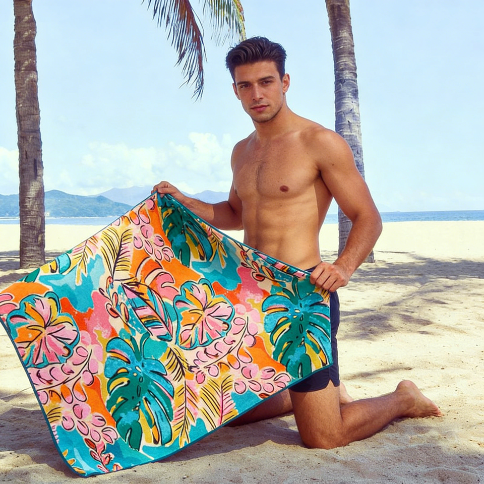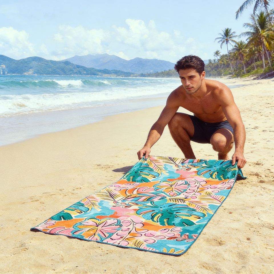 ผ้าเช็ดตัวชายหาดแบบกำหนดเอง ไมโครไฟเบอร์ รีไซเคิล ผ้าเช็ดตัวชายหาดฤดูร้อน ลายใหญ่ ผ้าเช็ดตัวชายหาดแบบยาว เป็นมิตรกับสิ่งแวดล้อม