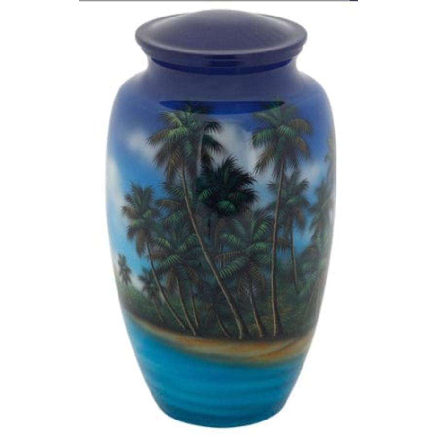 โกศสำหรับงานศพผู้ใหญ่พิมพ์ลายรูปทิวทัศน์ชายหาดโกศโลหะทำด้วยมือเป็นของชำร่วยสำหรับงานศพ