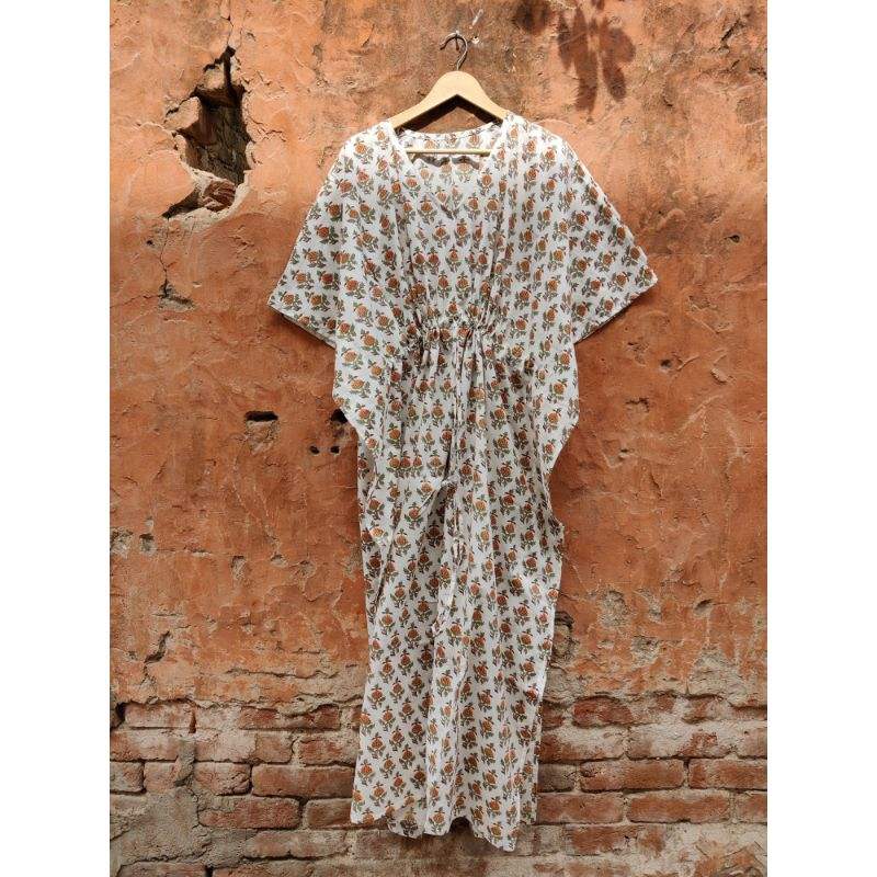 เดรสคาฟตันอินเดียทรงหลวมชุดชายหาดพิมพ์ลายดอกไม้ผ้าคอตตอนเนื้อนุ่มซักได้