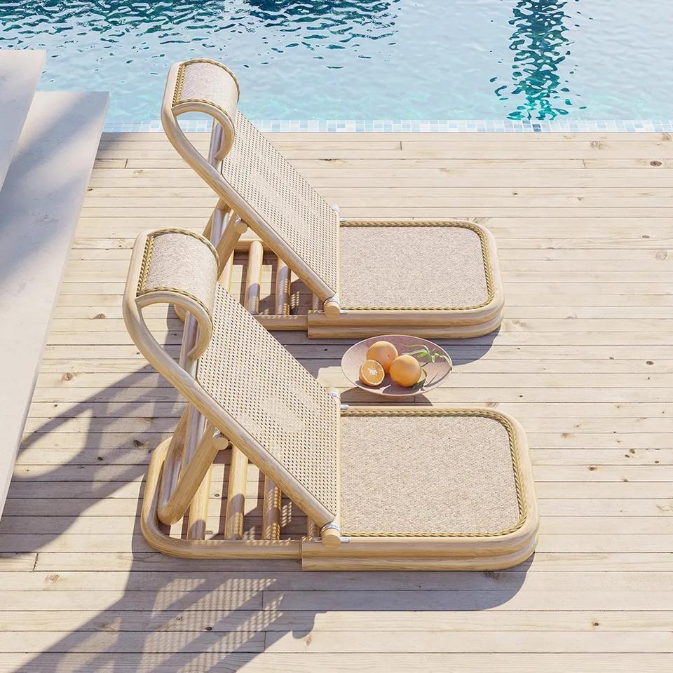 เก้าอี้ชายหาดหวายธรรมชาติพับได้พร้อมพนักพิงศีรษะ ขายส่งเก้าอี้หวายสำหรับใช้งานกลางแจ้ง