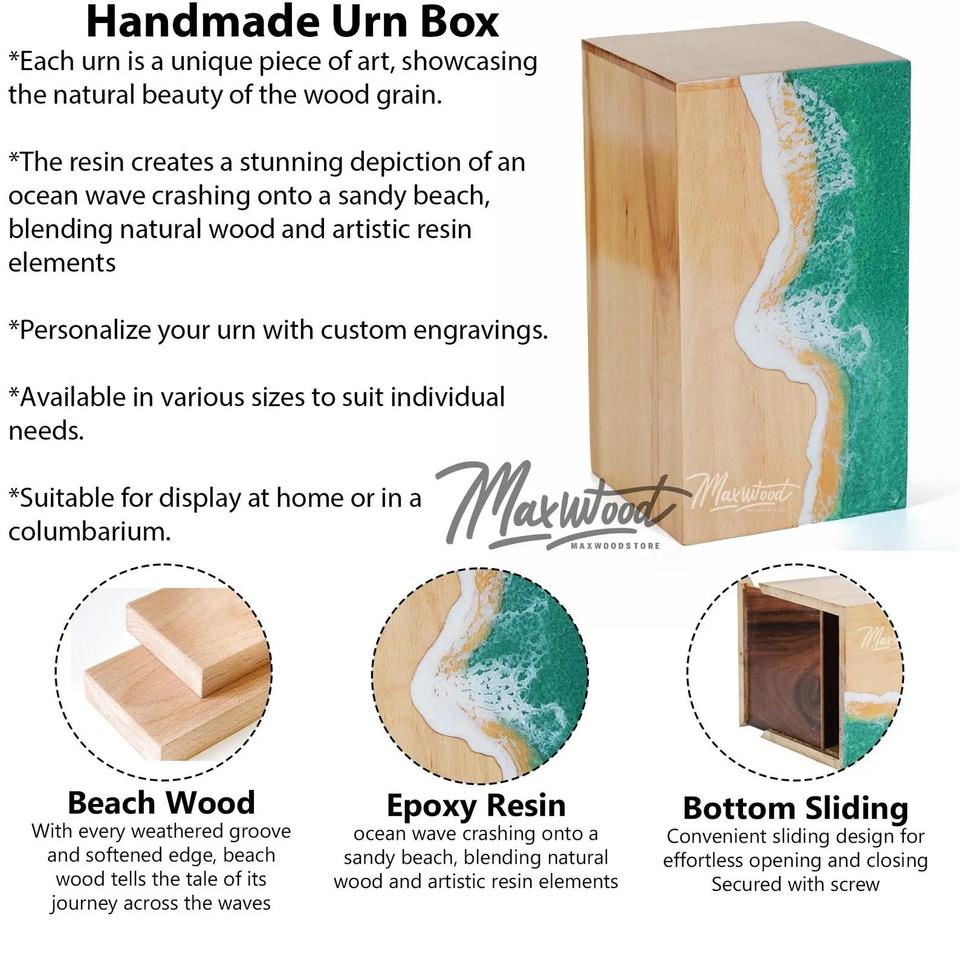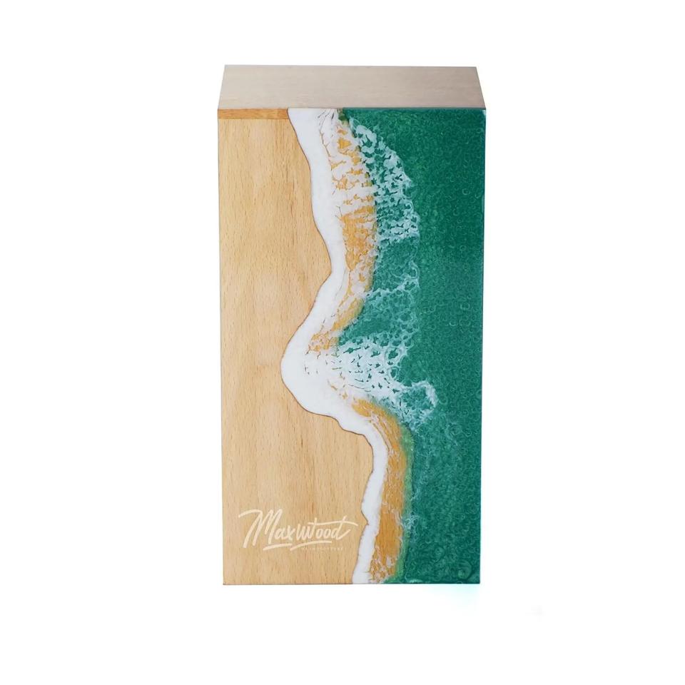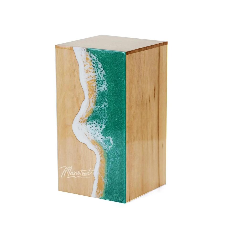 โกศไม้บีชวูดพร้อมลายคลื่นเรซิ่นสีเขียว – กล่องใส่เถ้ากระดูกสำหรับคนที่คุณรัก