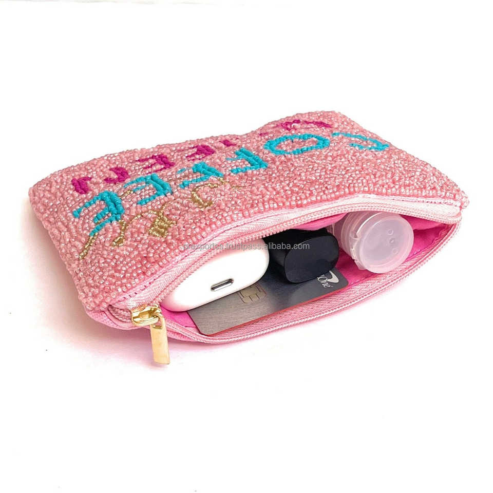 กระเป๋าใส่เหรียญลูกปัดทำมือลายลูกเจี๊ยบน่ารัก ดีไซน์เก๋ไก๋ หลากสีสัน ขนาดและข้อความสั่งทำได้ เป็นของขวัญ