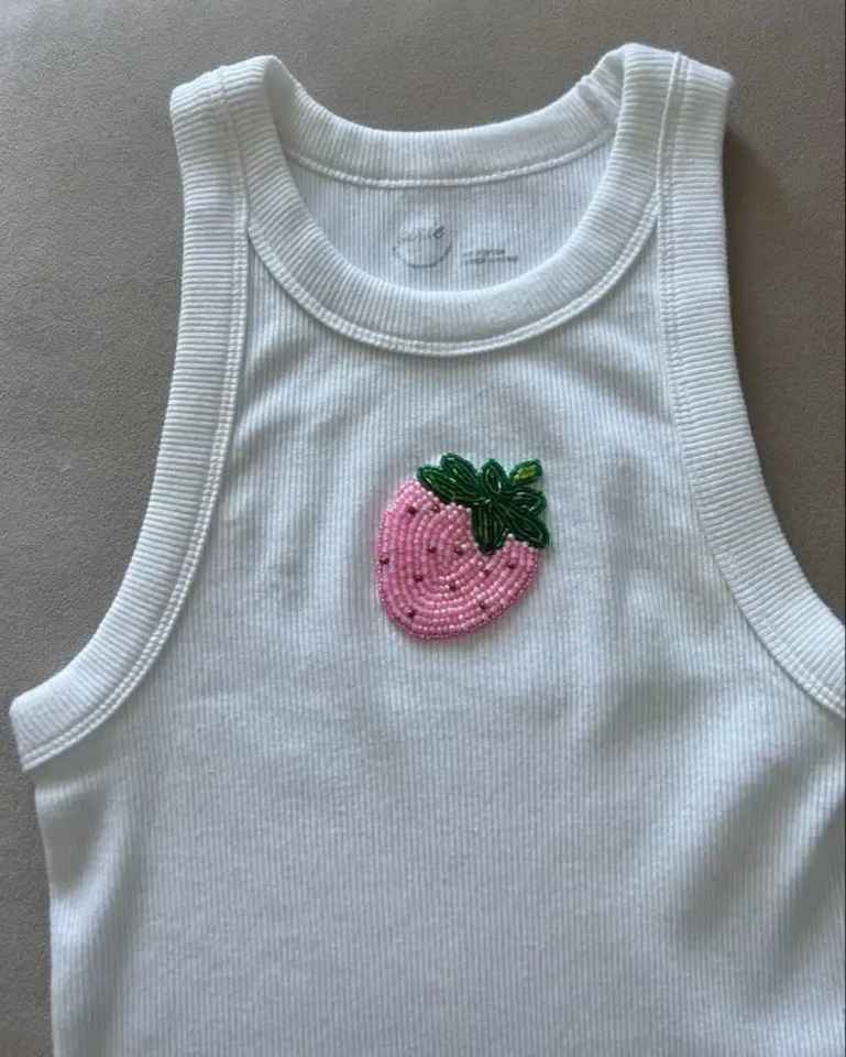 เสื้อกล้ามผ้าฝ้ายริบสีขาวปักลายสตรอว์เบอร์รี มะละกอ ลายทรอปิคอล ลายรถ ลายต้นปาล์ม ลายกุ้งล็อบสเตอร์ สำหรับผู้หญิง ทำด้วยมือ เหมาะสำหรับฤดูร้อน
