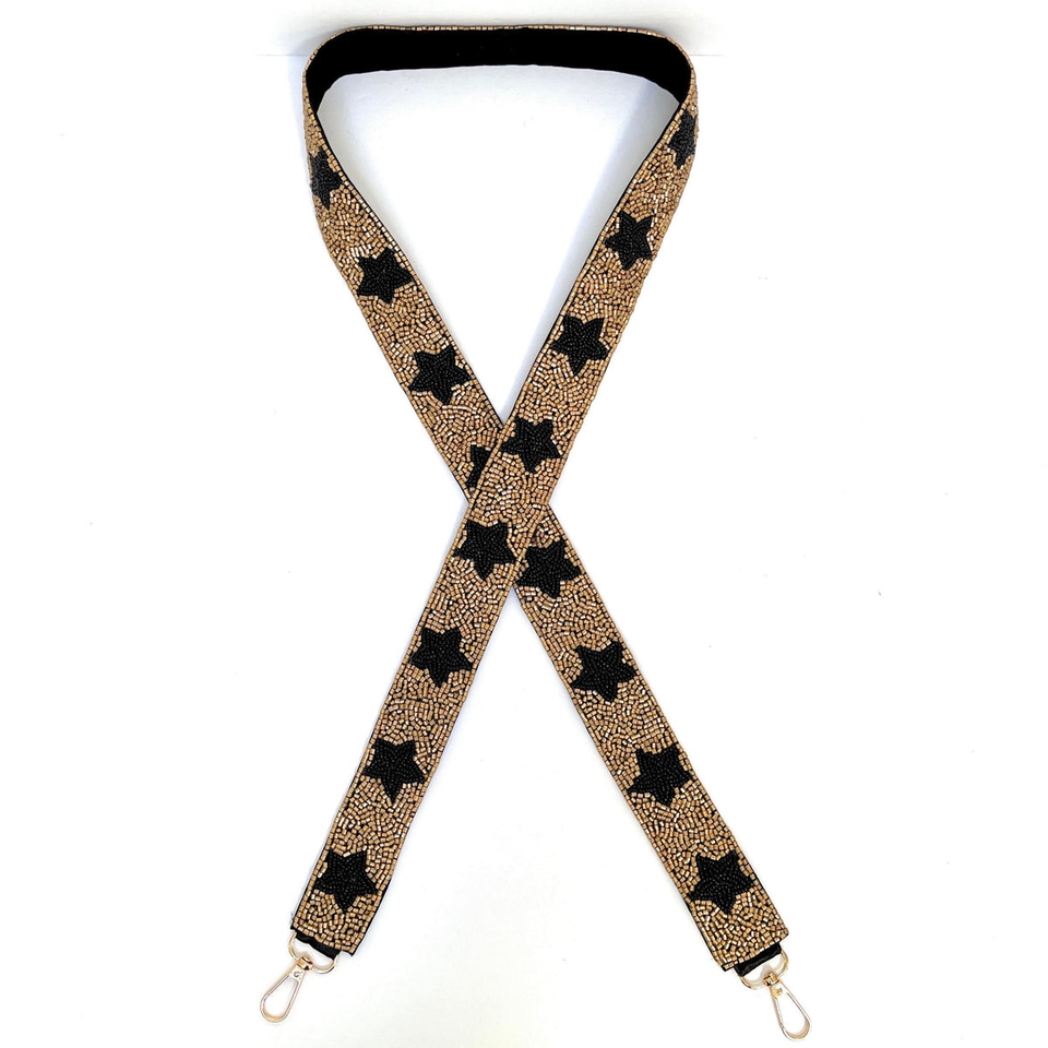เข็มขัดสายคล้องไหล่ปักสีดำและสีทองพร้อมลูกปัดดีไซน์ใหม่ที่น่ารักเหมาะสำหรับเด็กผู้หญิง