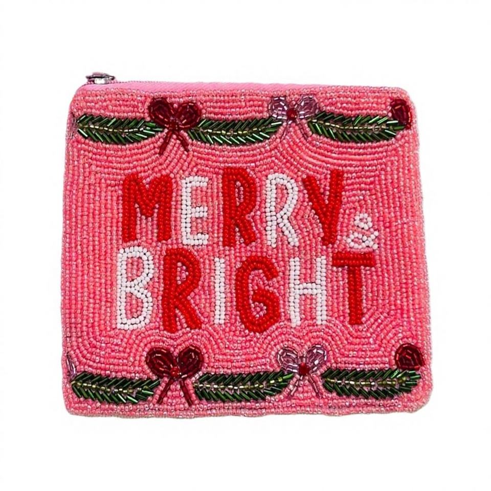 กระเป๋าใส่เหรียญแฟชั่นผู้หญิงลายดอกไม้โบฮีเมียนประดับลูกปัด กระเป๋าสตางค์แบบสะพายข้าง ซิปปิด ความจุเยอะ ขนาด 11x14 ซม. กระเป๋ามินิ วาเลนไทน์