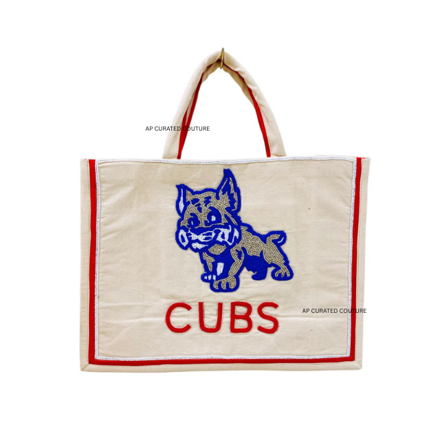 กระเป๋าผ้าแคนวาสปักลูกปัด - หูหิ้วไม้ไผ่ทำมือ ทนทาน เปิดด้านบน แฟชั่น ขนาดใหญ่ อเนกประสงค์ สำหรับแฟนกีฬา หรือเชียร์ลีดเดอร์