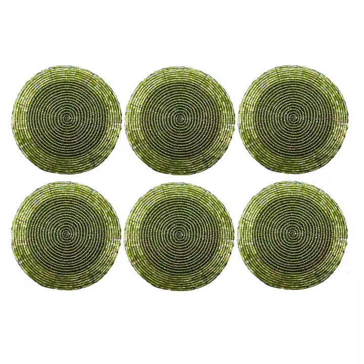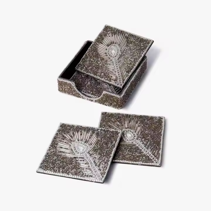 ชุดจานรองแก้วประดับลูกปัด งานปักคุณภาพเยี่ยม งานฝีมือประณีต ทำด้วยมือ จานรองแก้วประดับลูกปัดสำหรับเครื่องดื่ม