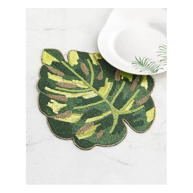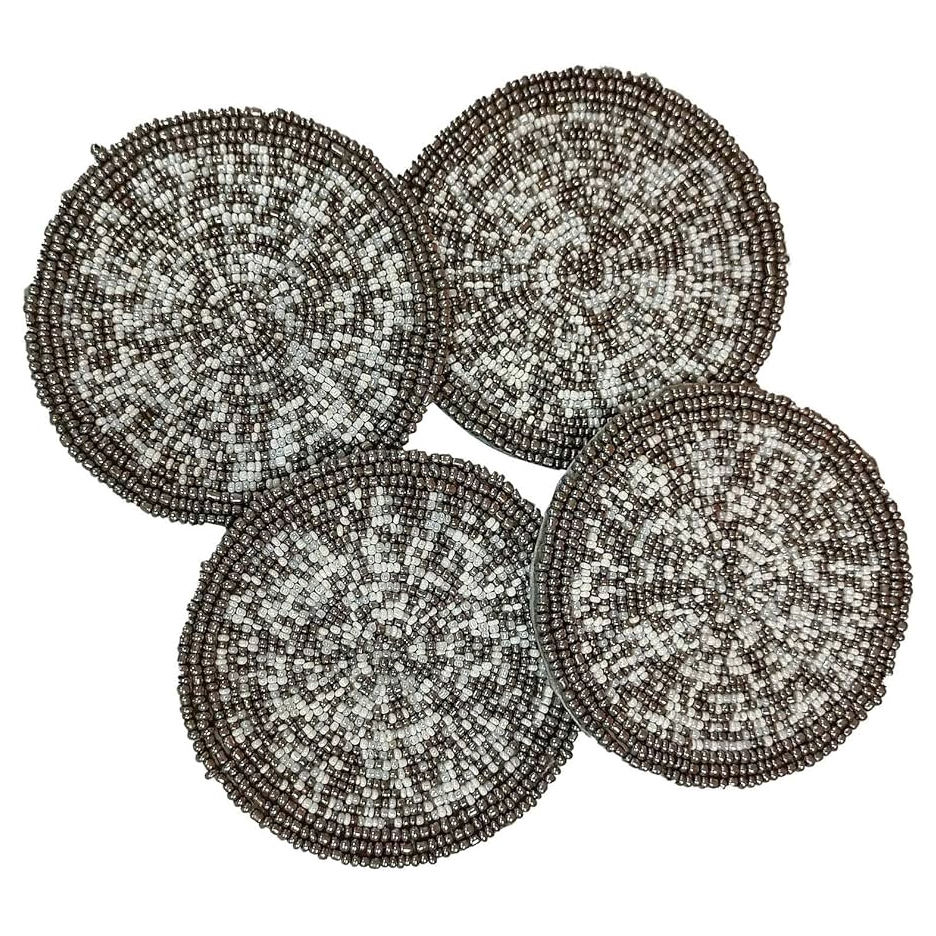 ชุดจานรองแก้วประดับลูกปัด ออกแบบข้อความได้ตามต้องการ งานปักมือ งานฝีมือช่างฝีมือผู้เชี่ยวชาญ 4
