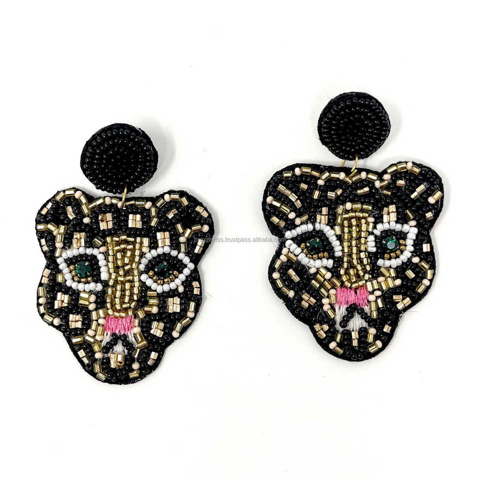 ต่างหูทรงหยดน้ำลายดอกไม้ประดับลูกปัดลายหน้าเสือดาวหลากสีสัน ดีไซน์โดดเด่นสไตล์โบฮีเมียน รูปทรงลูกแพร์ เหมาะสำหรับทุกเพศทุกวัย แฟชั่นสำหรับงานปาร์ตี้