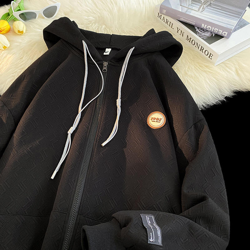 เสื้อสเวตเชิ้ตแบบมีฮู้ด ซิปหน้า ผ้าลูกปัดปักลาย ล้างแล้ว ไม่เป็นขุย ระบายอากาศได้ดี สีพื้น สำหรับทุกเพศ พิมพ์ลายนูน